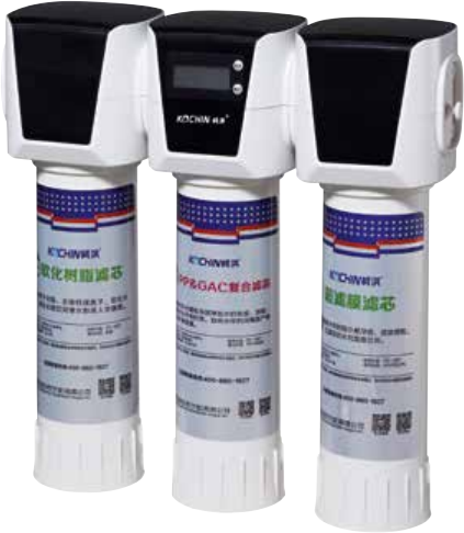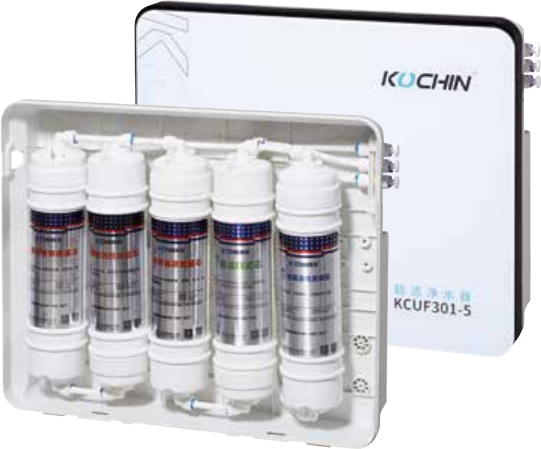 三级超滤 , 精密过滤棉+曰本三菱超滤(UF)+抑菌复合碳纤维,LED显示滤芯寿命,到時提示滤芯更换 , 自动切断水源。
